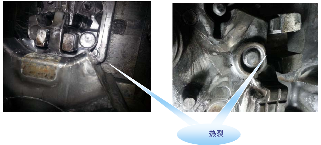 (5)壓鑄工藝的影響,高溫的鋁水傳遞給模具的熱量比較多,致使模具溫度比較高,當鑄件取走后模具溫度就急劇下降,這樣就很容易產生熱疲勞現象,出現熱裂現象;充填速度過高會 造成粘模、沖蝕、龜裂;當低速壓射速度較高使 金屬液包裹較多的氣體時,氣體在高速壓射進入型腔中的低壓區會膨脹,氣體膨脹產生爆破,氣體帶動鋁液以很高的速度沖擊、侵蝕型腔表面,造成型腔表面氣蝕缺損,被氣蝕的表面還會有裂紋產生;鋁液壓力的大小和受力方向對模具龜裂的影響也是很大的;脫模劑對模具激冷也會對模具產生熱疲勞現象。